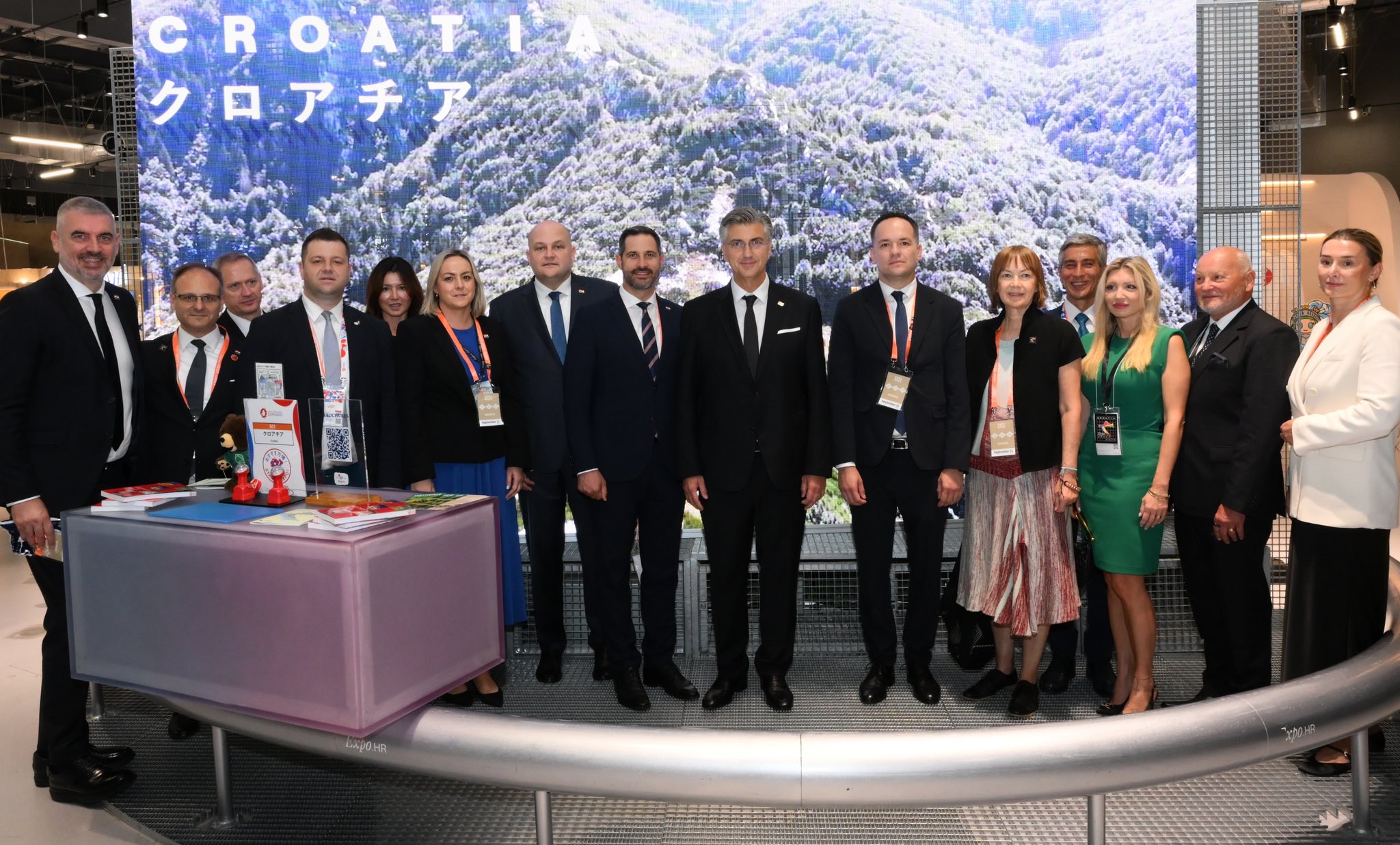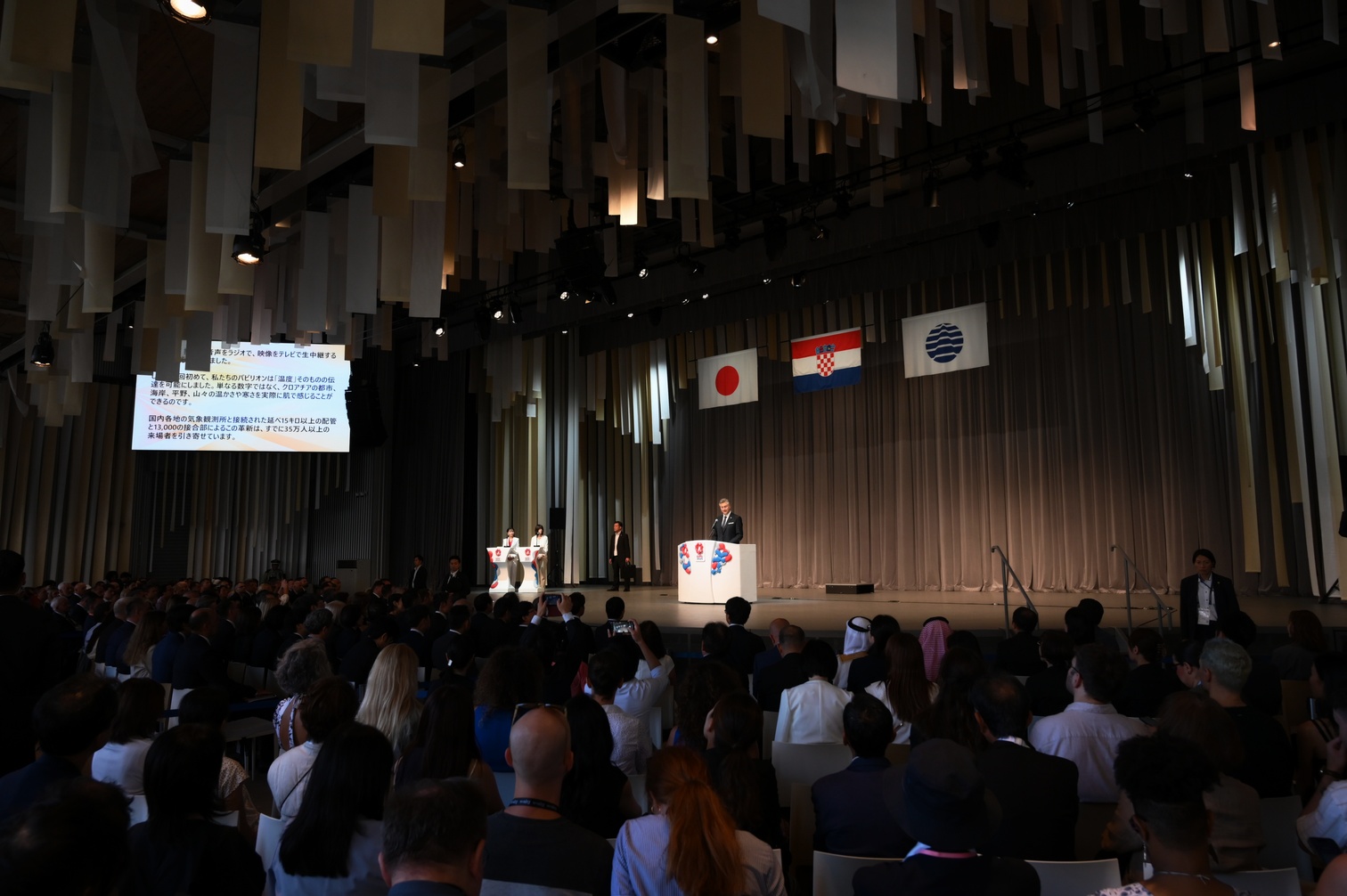 Nacionalni dan Republike Hrvatske na EXPO-u & Gospodarski forum Japan-RH. Premijer Plenković iz Osake: S ponosom predstavljamo ne samo ekonomska postignuća, već i hrvatsku kreativnost, ulogu u povezivanju kultura i trgovine, nacionalni identitet. Predstavljamo i svoju viziju budućnosti u kojoj će Lijepa Naša - zahvaljujući zemljopisnom položaju i rekordnim ulaganjima u prometnu, energetsku i lučku infrastrukturu - prerasti u mediteranska vrata srednje Europe za Japan i cijelu indo-pacifičku regiju!