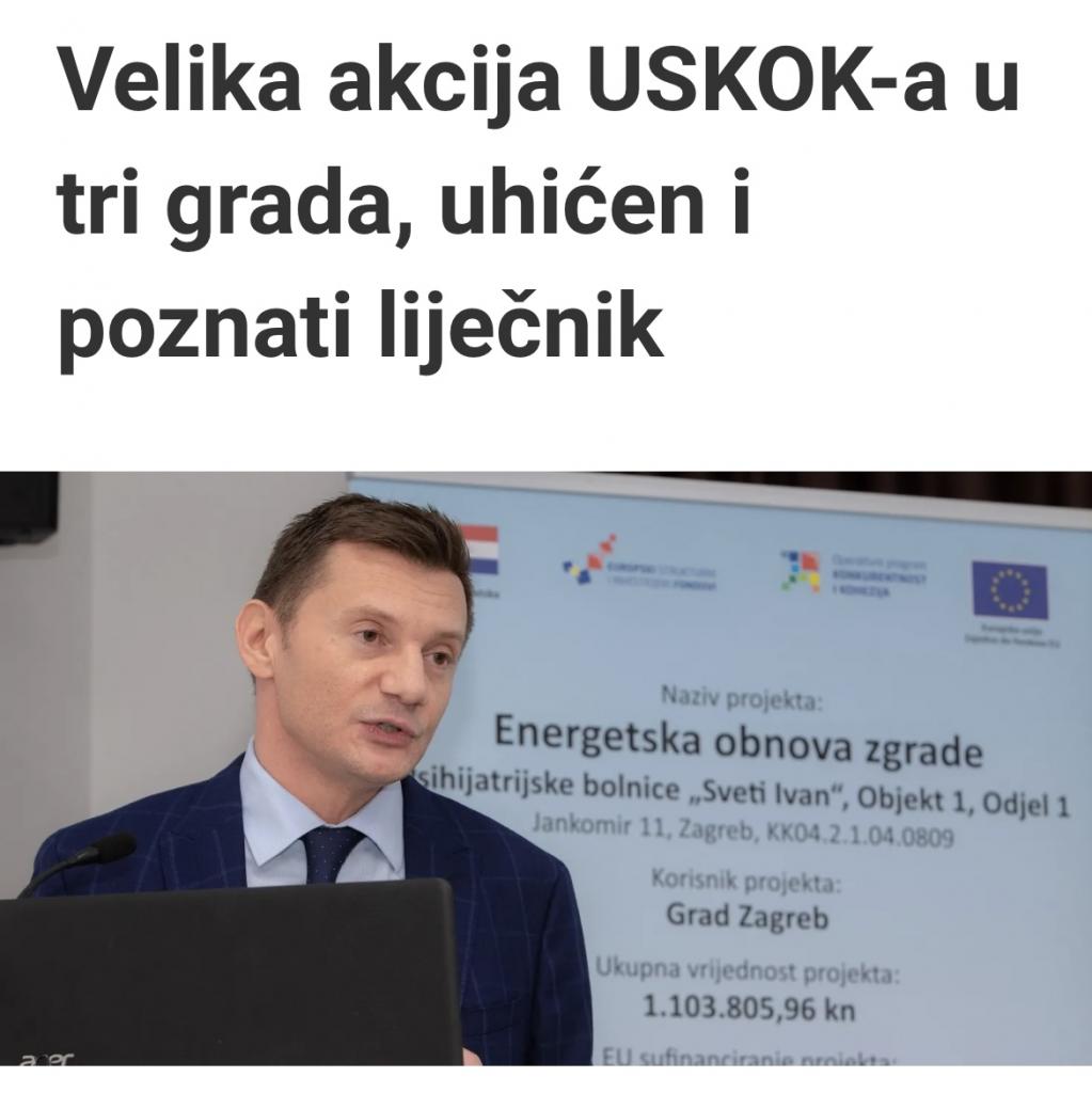 Na USKOK-ovu akciju i uhićenje Tomaševićeve uzdanice Vladimira Grošića, ustoličenog 2022. na čelo Klinike za psihijatriju Jankomir, reagirao je i predsjednik Organizacije HDZ-a Grada Zagreba Ivan Matijević.
