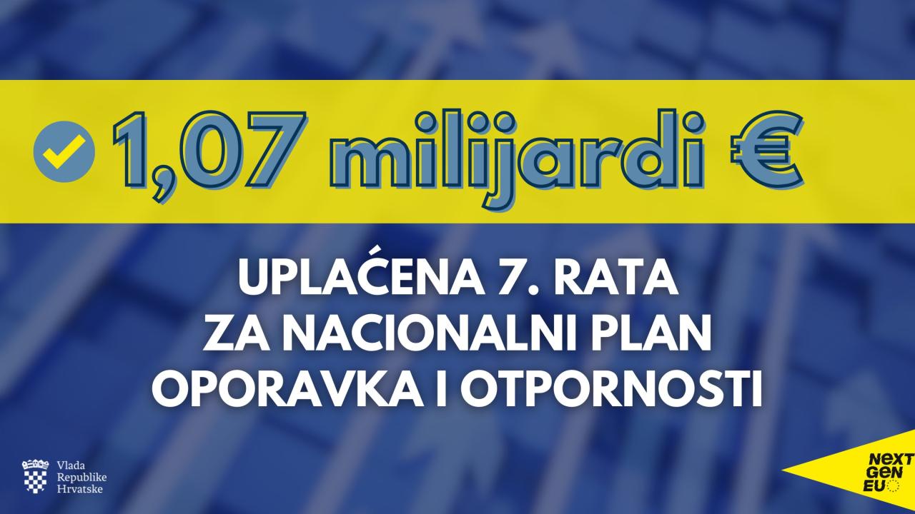 Potpredsjednik Vlade RH i ministar financija Marko Primorac izvijestio je da je u Državnu riznicu danas uplaćena 7. tranša sredstava iz Nacionalnog plana opravka i otpornosti (NPOO).
