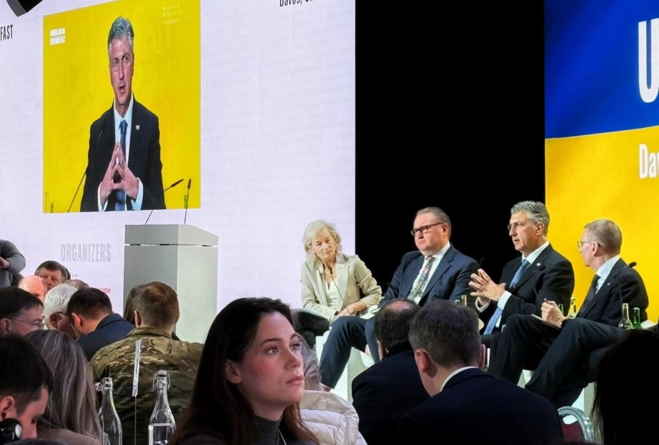 I u Davosu, pred najutjecajnijim državnicima i gospodarstvenicima svijeta, predsjednik Vlade RH i HDZ-a istaknuo je da jedinstvena iskustva Hrvatske i njena ekspertiza - i kao žrtve brutalne agresije i kao pobjednice u pravednom, legitimnom, obrambenom i oslobodilačkom Domovinskom ratu - može biti od velike vrijednosti za Ukrajinu.