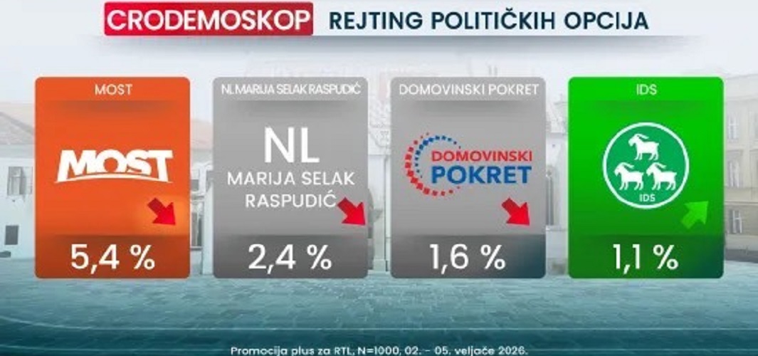 S druge strane, PHDZ/PVRH Andrej Plenković zabilježio je najbolji rejting u istom razdoblju - „skočio“ je na 17,9% (naspram 11,5% iz prosinca).