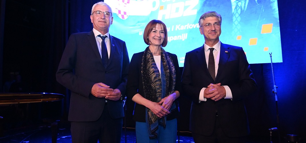 Još jednom čestitam županici Martini Furdek Hajdin, gradonačelniku Karlovca Damiru Mandiću, predsjednici Zajednice žena „Katarina Zrinski“ Nadi Murganić i cijeloj županijskoj organizaciji HDZ-a na pobjedama na lokalnim izborima i na doprinosu našim nacionalnim slavljima! - poručio je Andrej Plenković ulazeći u prepuni Zorin dom u Gradu na Četiri Rijeke: