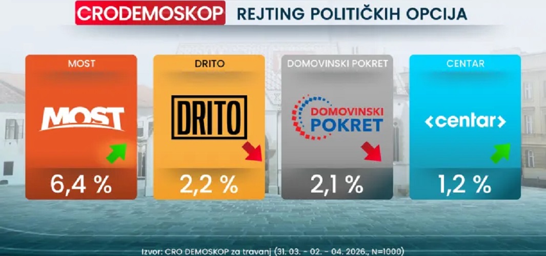 Nakon možemosa, oni su najveći gubitnici mjeseca: u ožujku su uživali potporu od 2,6%.