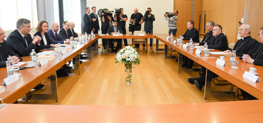 PVRH Andrej Plenković: „Hrvatska odlučno stoji uz ukrajinski narod, pružala je i pružat će snažnu financijsku, humanitarnu i svaku drugu pomoć Ukrajini“. I hrvatski biskupi i članovi Vlade istaknuli su važnost daljnjeg zauzimanja za ravnopravni položaj Hrvata i boljitak cijele zemlje. Sastanak u sjedištu Hrvatske biskupske konferencije u Zagrebu održan je uoči posjeta državnog tajnika Svete Stolice kardinala Pietra Parolina Hrvatskoj.