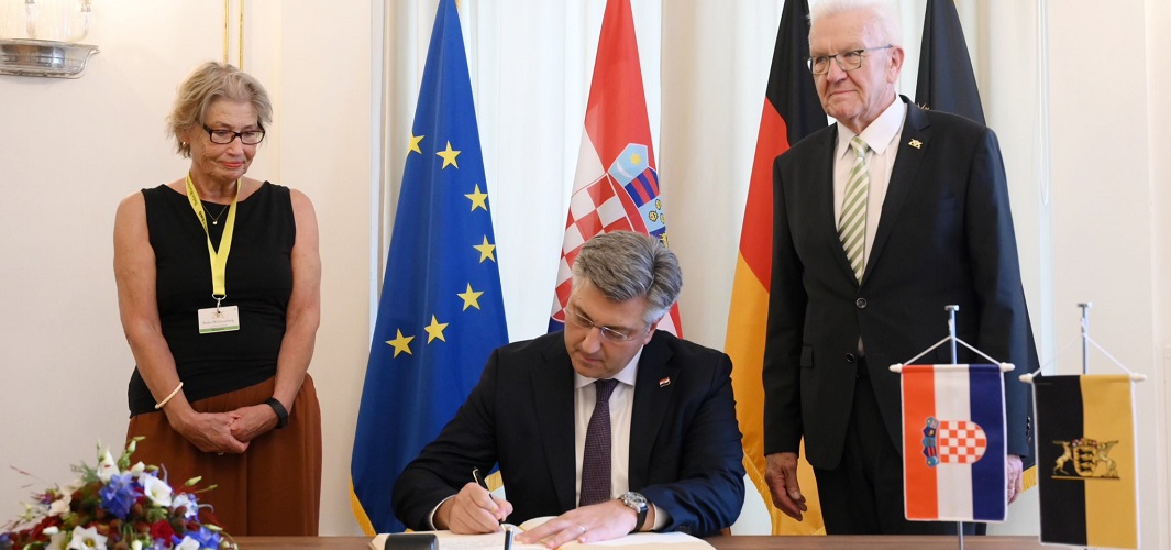 STUTTGART. PVRH Andrej Plenković: S baden-württemberškim premijerom Winfriedom Kretschmannom potvrdili smo izvrsne bilateralne odnose i visoku razinu dijaloga između Hrvatske i Njemačke. Želimo dodatno osnažiti suradnju u gospodarstvu, turizmu i energetici. Važna su nam njemačka ulaganja u obnovljive izvore energije, poput solarne i vjetroenergije, a hrvatska ulaganja u LNG terminal na Krku daju nam prostor da dio tog plina plasiramo prema Sloveniji, Austriji, Bavarskoj pa i Baden-Württembergu.
