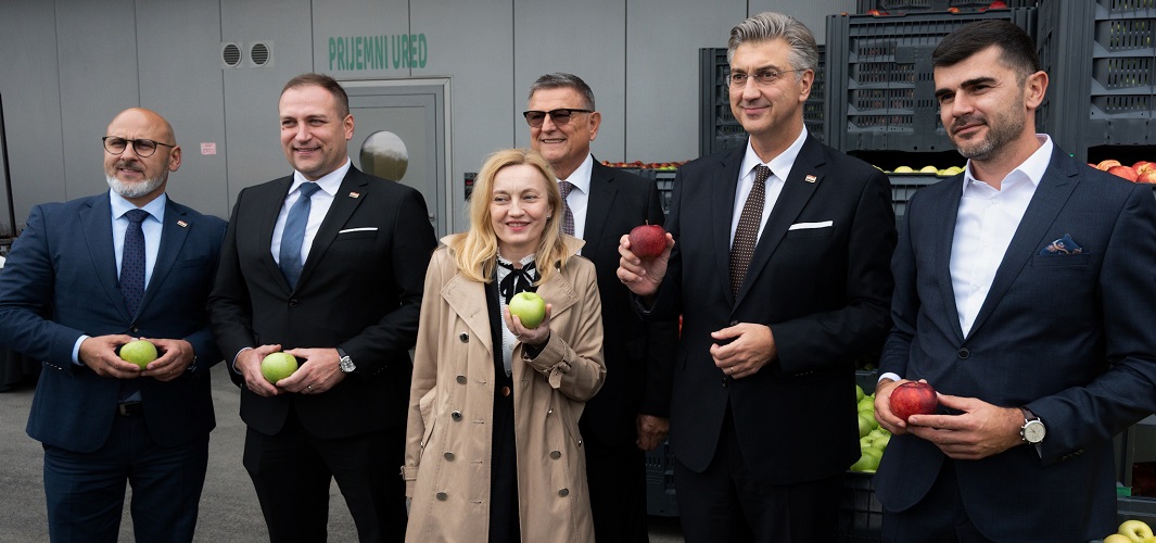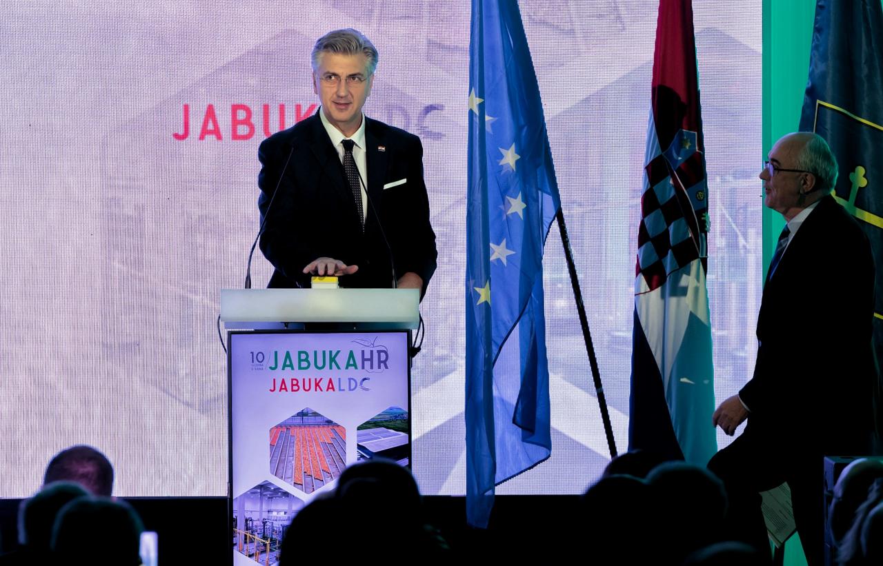 Premijer Plenković: Izgradit ćemo još 3 slična centra - u Požegi, Vinkovcima i Đurđevcu. Vrijednost? 110 milijuna €. I to velikim dijelom EU sredstava iz Nacionalnog plana oporavka i otpornosti (NPOO), koja učinkovito koristimo (i) za jačanje samodostatnosti hrvatske poljoprivrede. Posebno mi je drago to što smo ovo zdanje podigli u partnerstvu s Proizvođačkom organizacijom JabukaHR, koja okuplja vodeće uzgajivače jabuka. Danas je čak 73% te vrste voća na našem tržištu domaće proizvodnje