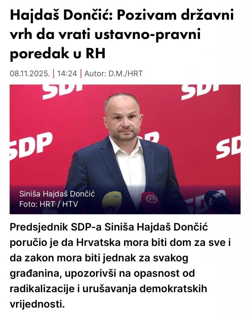 Opet optužujući sve političke neistomišljenike za „ustaštvo“ i „crnilo“, Hajdaš u svom novom pamfletu licemjerno napominje i da „zakon mora biti jednak za sve građane“.