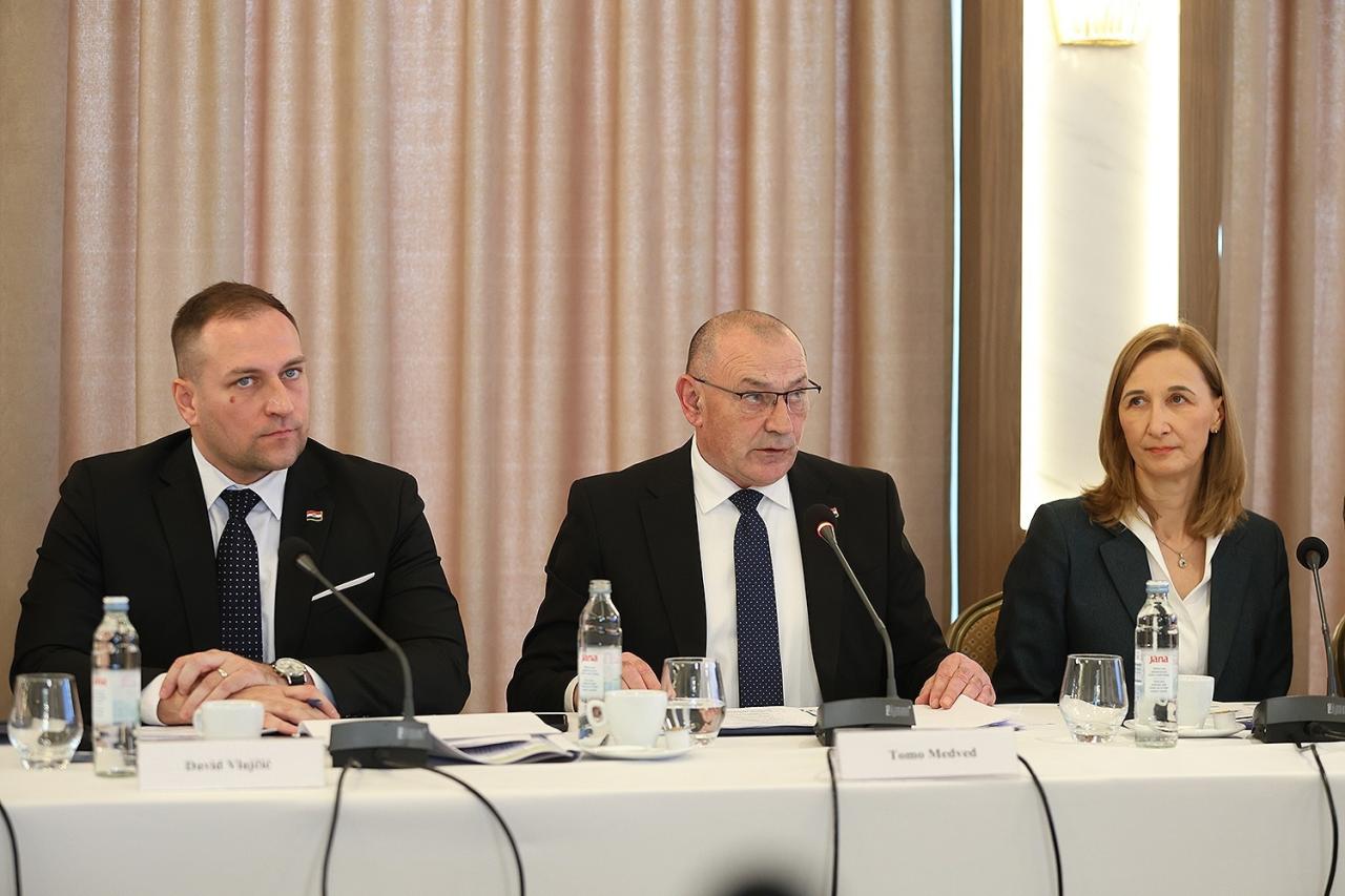 Medved je podsjetio i na to da Hrvatska bilježi snažne makroekonomske i tržišne pokazatelje - očekivani rast BDP-a u 2026. godini iznosi 2,7 posto, deficit ostaje ispod 3 posto, a udio javnog duga smanjuje se na 56 posto: