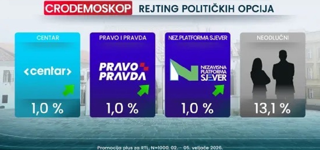 S druge strane, PHDZ/PVRH Andrej Plenković zabilježio je najbolji rejting u istom razdoblju - „skočio“ je na 17,9% (naspram 11,5% iz prosinca).