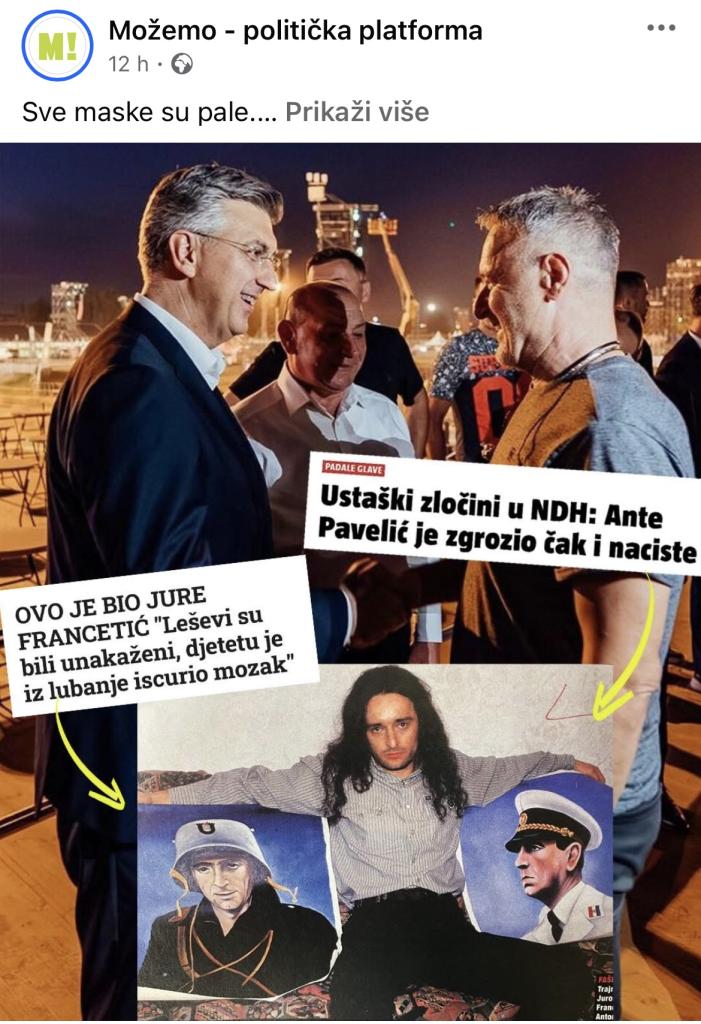 S možemovskih društvenih mreža, uz egidu SVE SU MASKE PALE!, vrište „NDH“, „genocid“, „Hrvati koljači“, „fašisti“, „nacisti“… Ni Informer ne bi bolje.