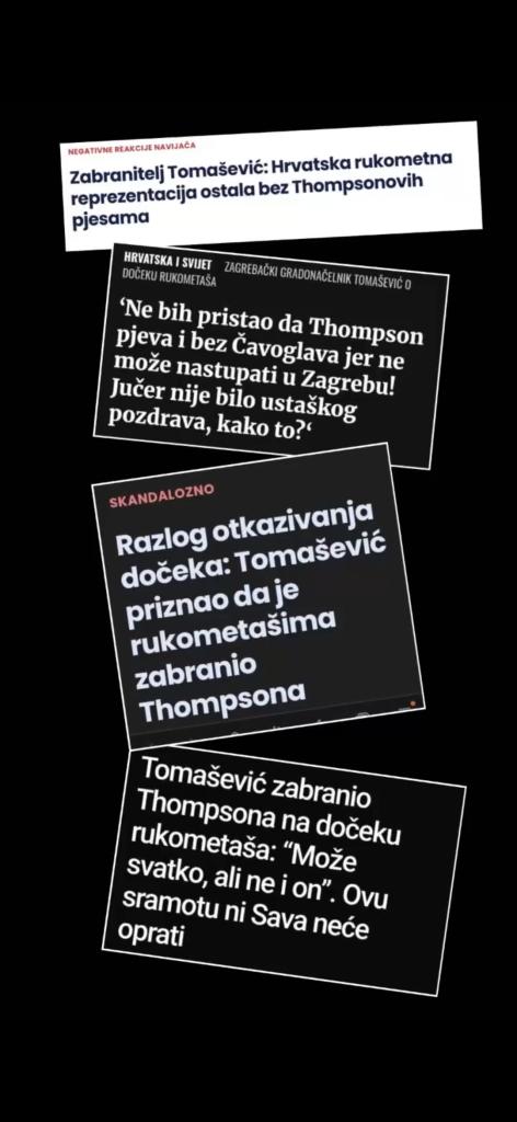 Slažemo se s Tomaševićem - Sve su maske pale. Ali, njegove! Opet se koprca. Hrvati mu se rugaju jer je opet uhvaćen u muljaži. Lani, kao organizator dočeka tih istih rukometaša, te iste veljače, na tom istom Jelačić-placu - nije vidio problem u Thompsonu. Štoviše, pozivao je sugrađane da u što većem broju dođu na proslavu, napominjući da reprezentativci imaju pravo sami odabrati koji će izvođači nastupiti. Na nove spinove reagirali su čelnici zagrebačkog HDZ-a Ivan Matijević i Maksimilijan Šimrak.