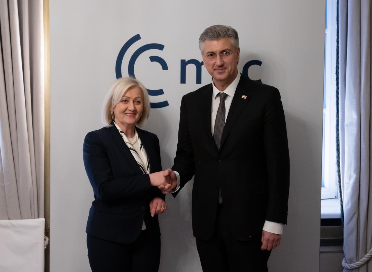 Munich Security Conference (2). Predsjednik Vlade RH i HDZ-a Andrej Plenković i na sastanku s državnim tajnikom SAD-a Marcom Rubiom upozorio je na kršenje ustavnih prava naših sunarodnjaka u BiH i diskriminatorsku praksu preglasavanja Hrvata za člana Predsjedništva. U Münchenu se zbog toga sastao i s visokim predstavnikom BiH Christianom Schmidtom i predsjedateljicom Vijeća ministara BiH Borjanom Krišto, s kojom se družio i na susretu s hrvatskom zajednicom u Bavarskoj.