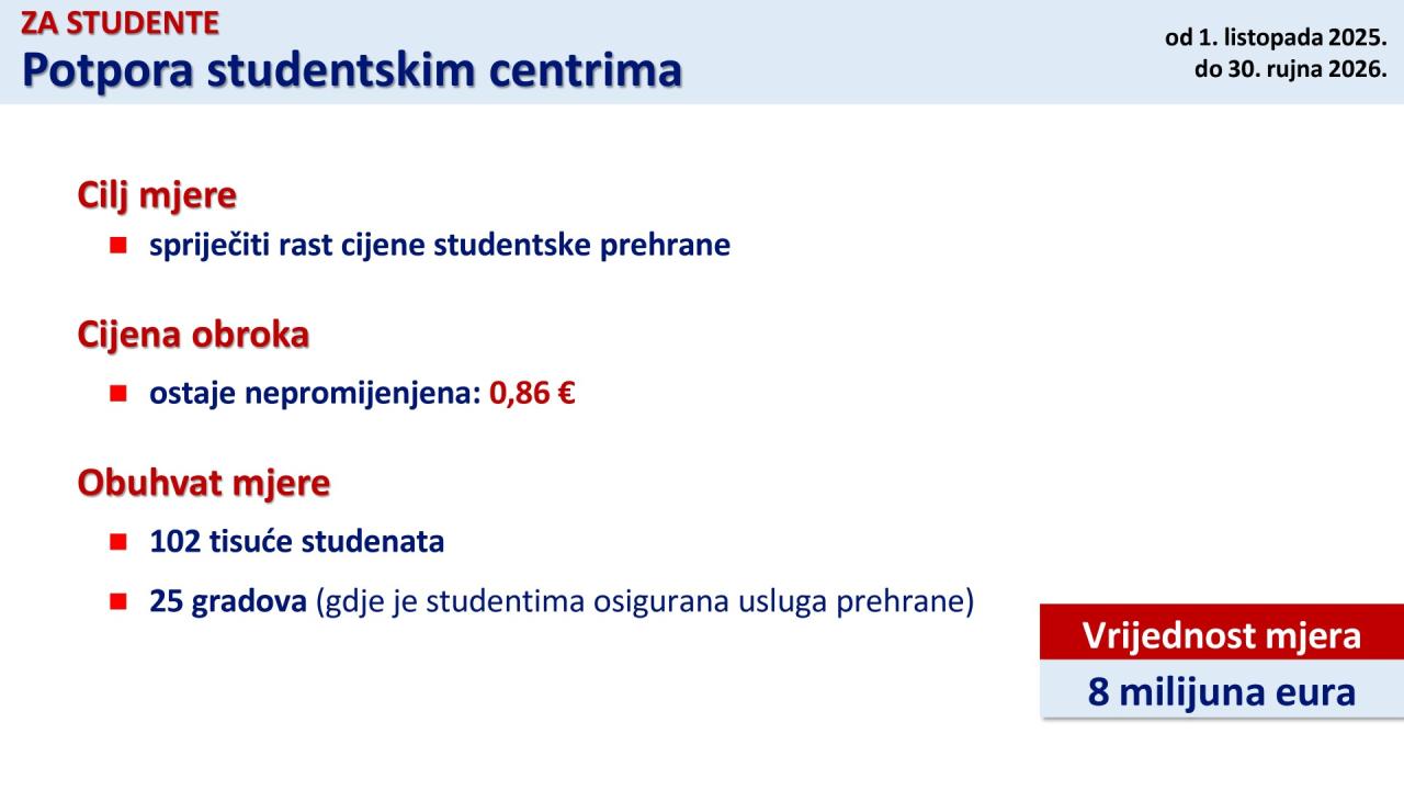 U domovima se zadržava obrok od 0,86 €. Najjeftiniji je to prehrana u Europi!