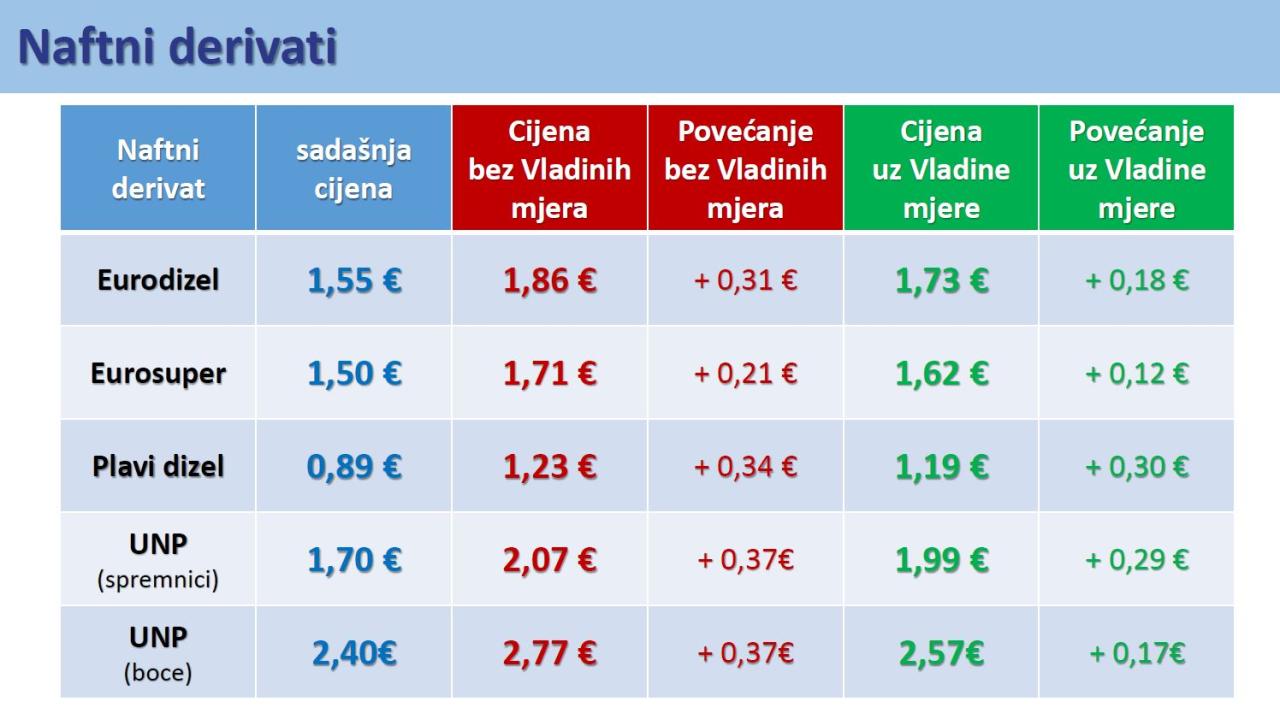 Bez Vladine intervencije, litra eurodizela bila bi u maloprodaji skuplja 16 centi, eurosupera 9 centi, a plavog dizela 4 centa.