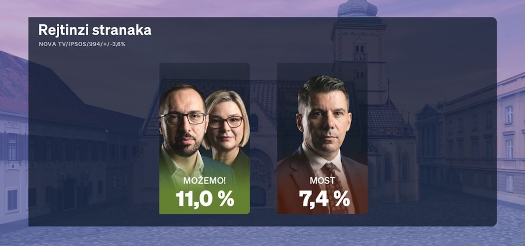 Slijede zabranitelji(ce) iz NE Možemo s 11% i MOST sa 7,4%.